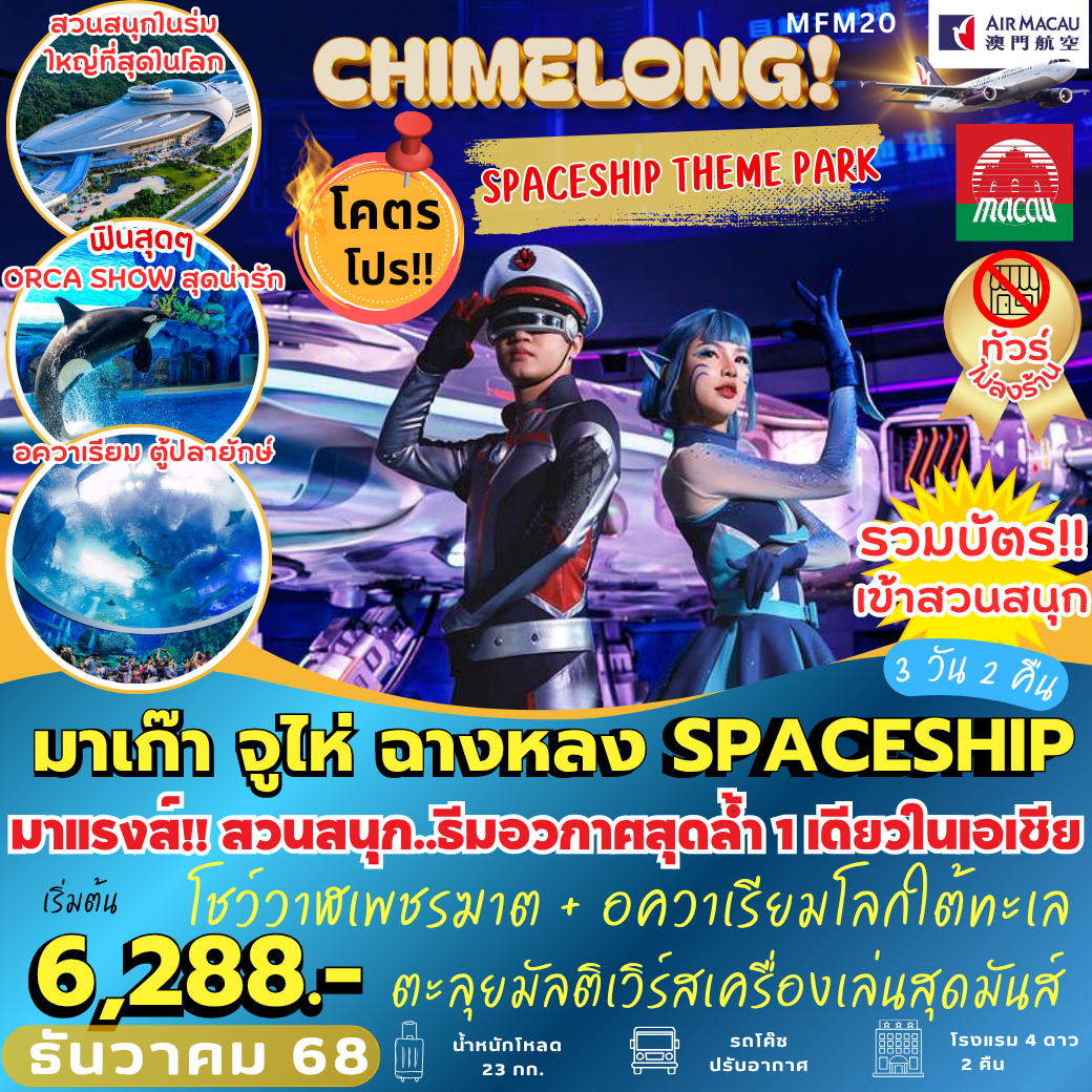 วันที่ 2 - เต็มอิ่มจุใจ สวนสนุกในร่มใหญ่ที่สุดในโลก...สวนสนุกฉางหลง SPACESHIP THEME PARK (รวมบัตรเข้าเล่นได้ทุกอย่าง) อควาเรียมใหญ่ที่สุดในโลก + ชมโชว์วาฬเพชรฆาต หรือ ORCA SHOW + ตะลุยมัลติเวิร์ส เครื่องเล่นสุดมันส์